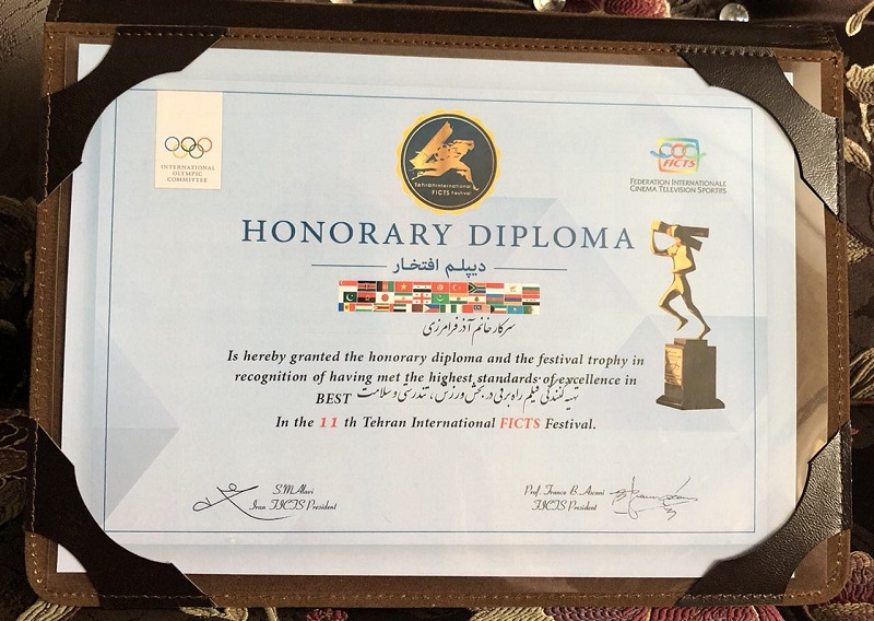 احراز رتبه نخست و دیپلم افتخار بهترین فیلم مستند جشنواره ورزشی بین المللی تهران توسط دانشجوی مرکز آموزش علمی کاربردی فرهنگ و هنر واحد ۱۱